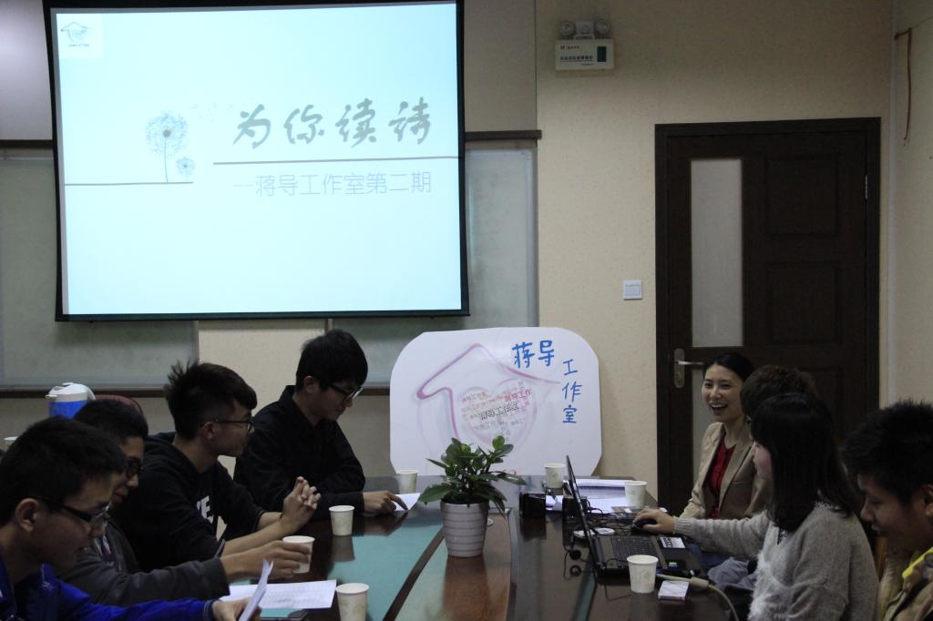 活动在一片温馨的氛围中开展,蒋老师与同学们分享自己开办此次活动的初衷,即每天为自己的心灵读首诗,让我们回归柔软与真挚,体验诗意生活。蒋老师带头,为大家朗读了诗歌《雨后》。接着,有同学读了意境幽长的《雨巷》,夹杂着淡淡忧伤;有同学读了《当你》,激励大家对生活要充满信心;有同学读了《波兰来客》,谈了自己对于高中生活与大学生活落差的感悟,也表达了自己对于寻到迷茫尽头的企盼;有同学读了《念奴娇》,荡气回肠;更有同学赋上自己所做的一首诗《玉京秋》,让在座同学不禁赞叹。在这难得的读诗时光中,大家都深深沉浸于这轻松愉快的时间中。最后,蒋导与同学们分享了在这次活动中的感悟与收获,本次活动在一片轻松写意的氛围中落下了帷幕。