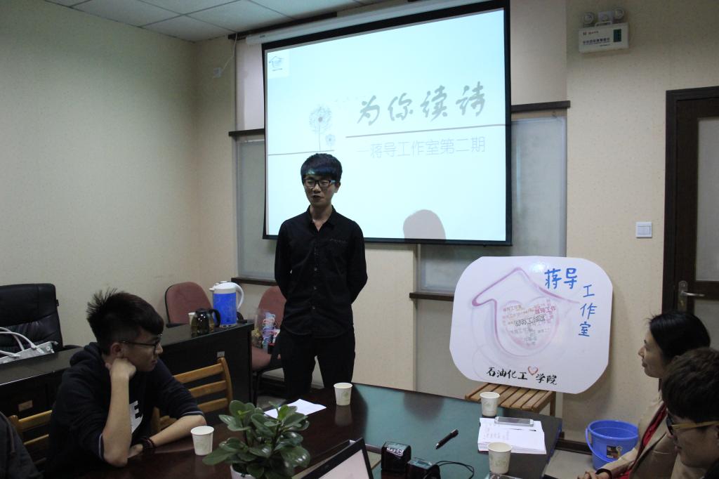 于院办212举办了石油化工学院蒋导工作室第二期“为你读诗” 主题活动,营造了一个同学们与嘉宾院团委书记蒋林娟老师温馨的诗歌下午茶时光。本期活动由孙宁主持。