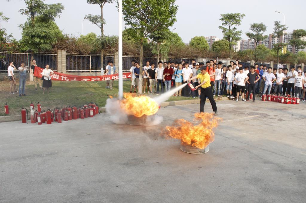 演练前期由带队老师先进行讲解,让同学们详细了解有关火灾现场的应急处置方案,灭火器的原理、基本操作方法以及注意事项。在认真听取讲解及观摩后,每个同学都亲自体验了现场灭火的过程,面对熊熊燃烧的火桶,表现的十分积极勇敢,并且按照灭火的方法和步骤迅速有效的将火桶内燃起的大火扑灭。本次演习中,每一位同学都亲手体验了使用灭火器灭火的过程,并且对火灾发生时的应急措施有了更详细的了解,为今后的学习及工作时的消防安全打下了坚实的基础。