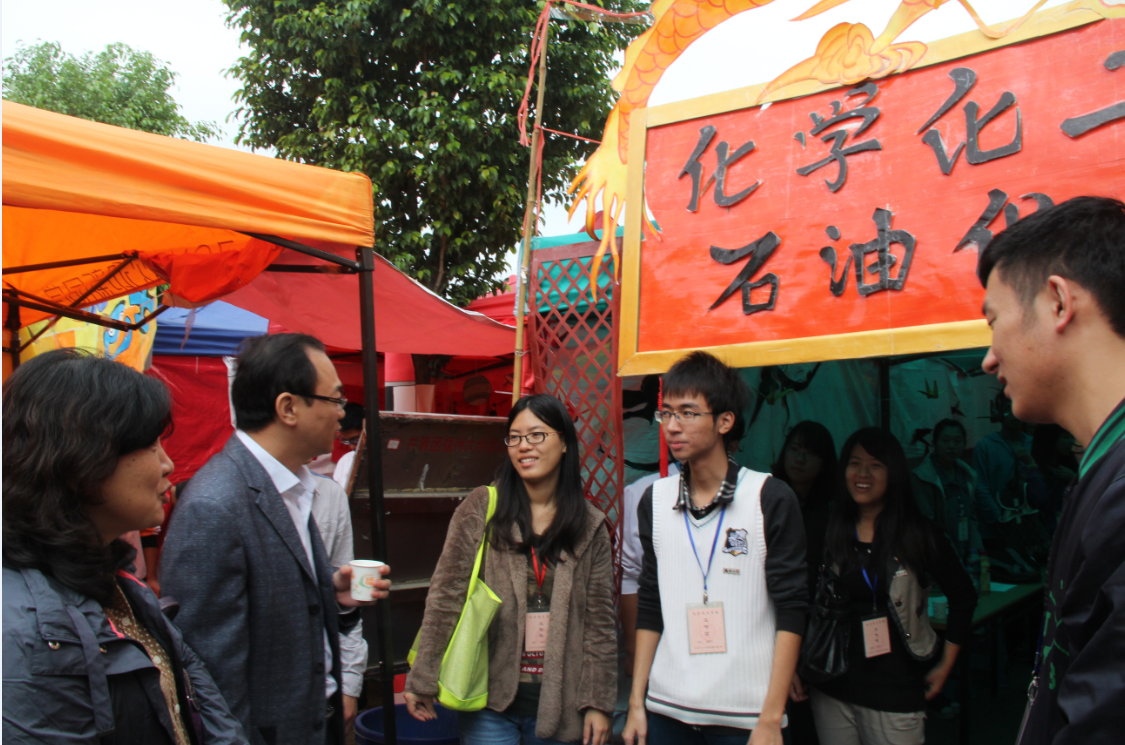 学院领导对本届运动会也十分关注。一大早,团委书记陆莉莉便来到运动场检查准备工作,对相关工作要点提出了进一步的要求和建议。早上九时,学院党委石炳文书记亲临化学化工学院、石油化工学院大本营关心后勤保障工作开展情况,亲切关怀坚守在岗位上的志愿者们,并亲临比赛现场观看竞赛,鼓励运动员们奋勇拼搏,再创佳绩。