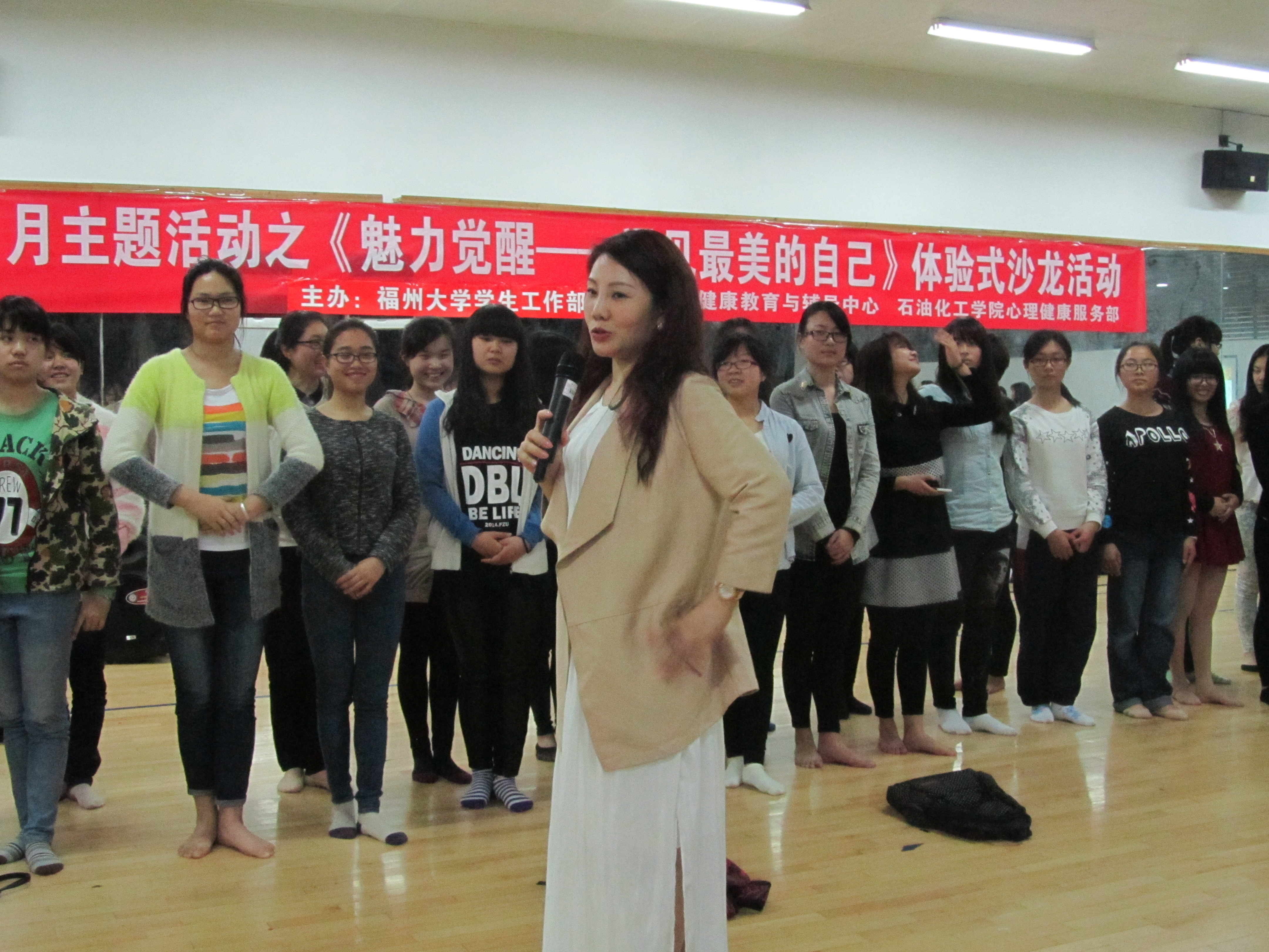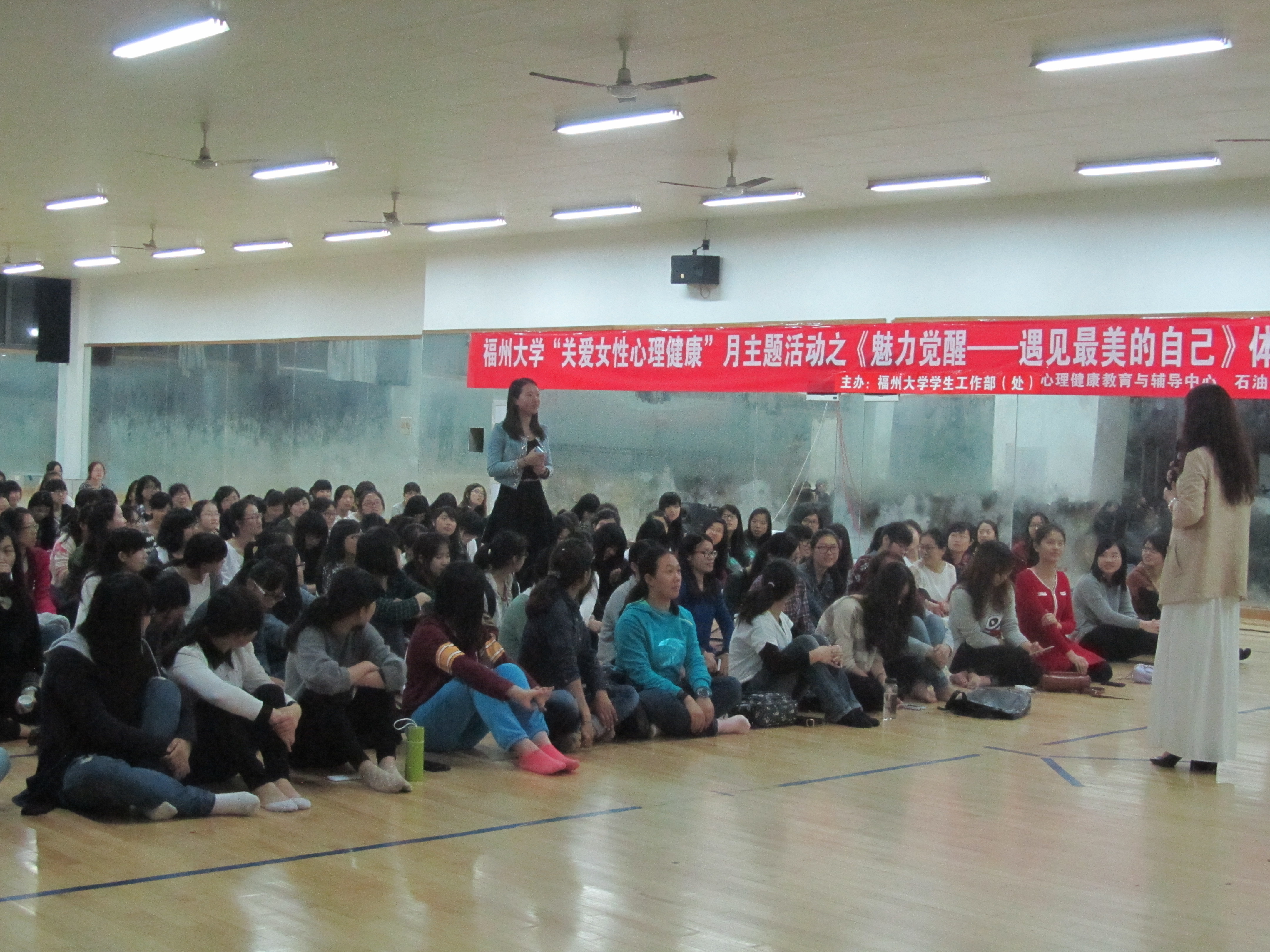 学生工作部(处)心理健康教育与辅导中心、石油化工学院主办的“关爱女性心理健康”月主题活动之《魅力觉醒——遇见最美的自己》体验式沙龙活动准时在风雨体育馆健美操厅开展,活动有幸邀请到了来自广州慧生活优雅女子学苑的创办人李晓老师,作为合一大学的训练师,李晓老师通过其擅长的身心灵教学模式,用自己的魅力征服了现场的一百三十多位来着全校不同专业的女生们,在轻松、愉悦的氛围中,让女生们打开心扉,展现魅力,学会如何与最美的自己约会。