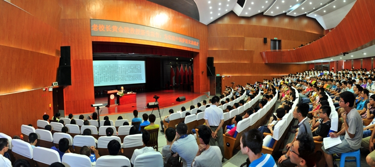 老校长黄金陵教授应邀在旗山校区图书馆博学厅,为化学化工学院、石油化工学院670名2013级本科生和研究生新同学作题为“为实现中国梦而立志成才”的主题报告,该主题报告会是化学化工学院2013级新生入学教育周系列活动之一。报告会由化学化工学院党委施卫华副书记主持。