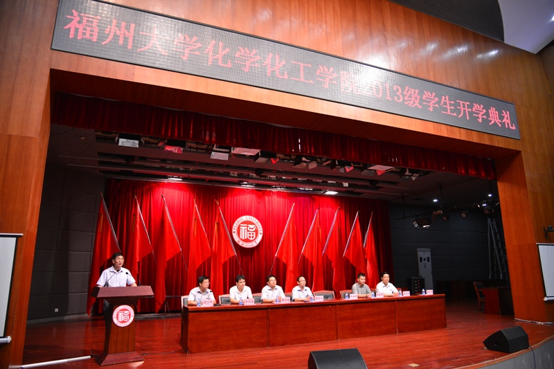 化学化工学院2013级本科及研究生开学典礼在图书馆博学厅隆重举行。化学化工学院院长王绪绪教授、院党委石炳文书记、施卫华副书记、常务副院长陈建中教授、副院长林树坤教授、副院长黄剑东研究员、院长助理付凤富教授、化学系主任陈义平教授出席了开学典礼。大会由院党委施卫华副书记主持。开学典礼在庄严的国歌声中拉开帷幕。