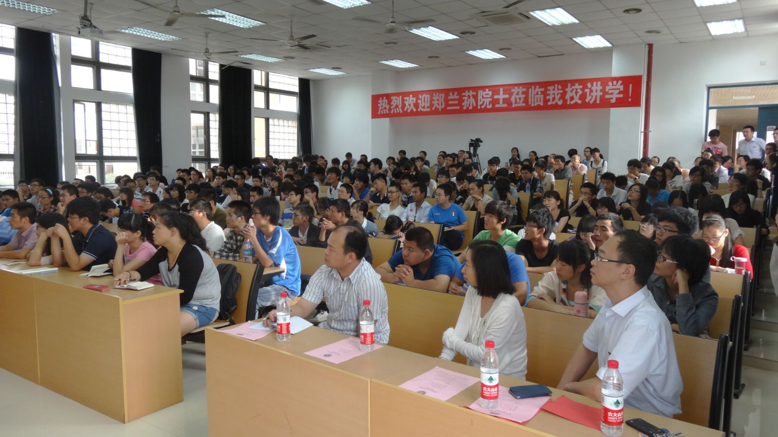 2013年10月19日下午,中国科学院院士、973计划项目首席科学家、教育部化学专业教学指导分委员会主任、全国政协常委、福建省政协副主席、民盟中央副主席、厦门大学教授郑兰荪院士应邀到我校出席校庆55周年“院士论坛”,以授课的形式为化学化工学院师生带来一堂题为《物质结构与原子团簇》的精彩教学示范课。250多位青年教师和学生到场聆听,东3-109教室座无虚席。讲座由化学化工学院党委石炳文书记主持。