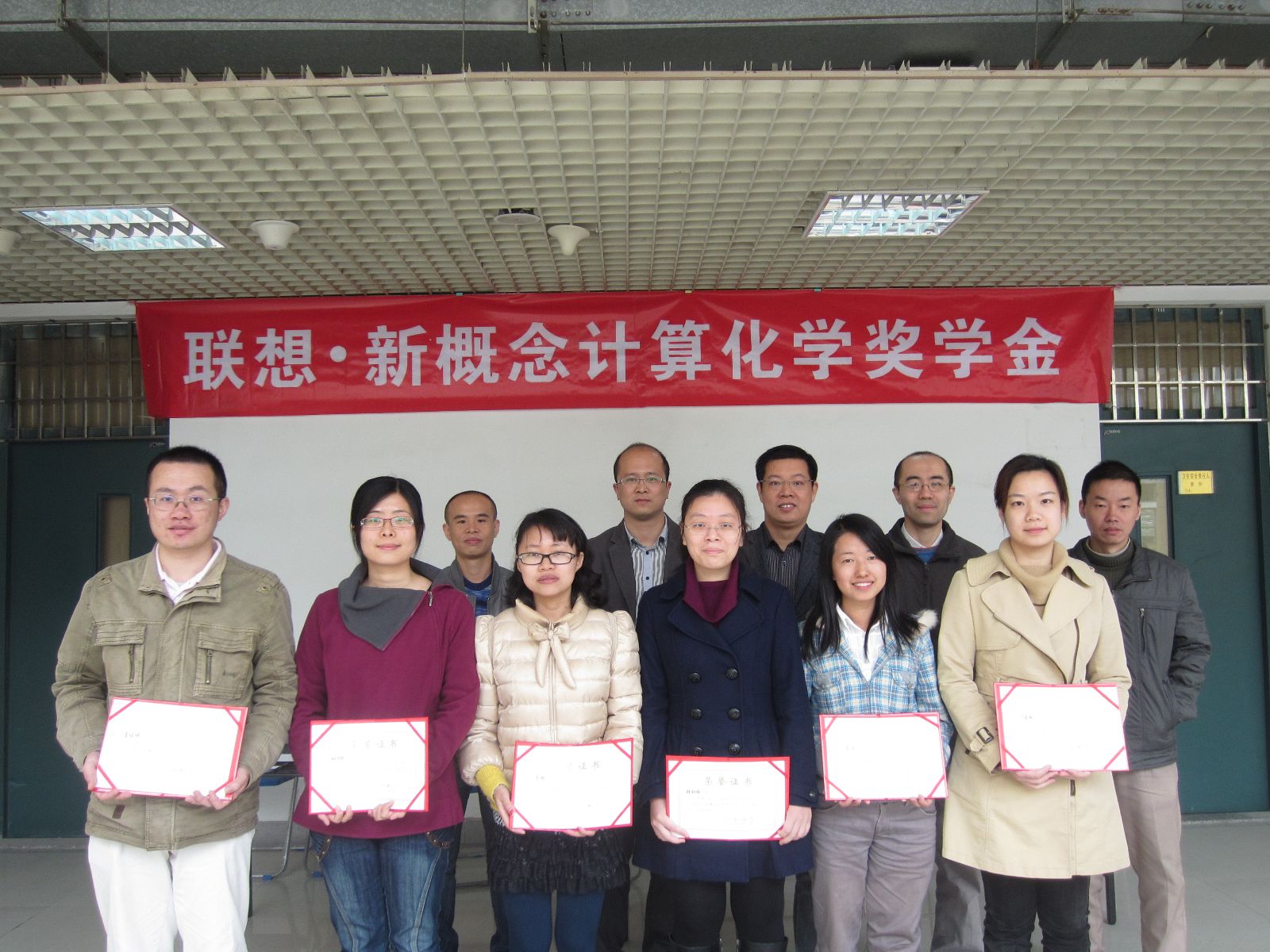 3月14日上午,化学化工学院理论化学与分子设计研究所举行了2012年度“联想·新概念计算化学奖学金”颁奖仪式。出席本次颁奖仪式的有:联想集团福建分区的代表张立先生、新概念科技集团总经理姚金成先生、化学化工学院党委施卫华副书记及研究所所有师生。