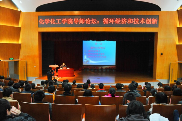 学生做题“循环经济和技术创新”的报告。报告会由化学化工学院副院长黄剑东老师主持,院党委施卫华副书记、学工组辅导员和化工专业学生参加了报告会。