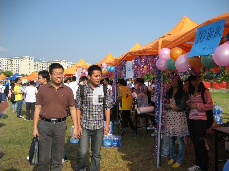 此时铅球比赛的另一赛区,一颗铅球恰好在视线中划出一道完美的抛物线,欢呼声也随之而起,雷小平学姐却在众人的目光中淡然走入人群中。身为12级的研究生,小平学姐的比赛状态显然不输于本科新生,7.56米的好成绩让她稳居第一。在赛后的采访中,她说的最多的并非她自己,而是慧眼识才的班长和支持她、陪她训练的同学们。当笔者问及是否要参加接下来的校运会时,小平学姐笑着说,“学院里的人才很多,校运会同样需要新的人才为学院争光!”当新生们围上前邀请学姐指导他们训练时,她表示会尽量抽出时间指导新生。这样简单的镜头,却让我们感受到一个极富凝聚力的集体和一位热心助人、关爱后备的学姐,这是我们化院的骄傲,也是所有福大人的骄傲!