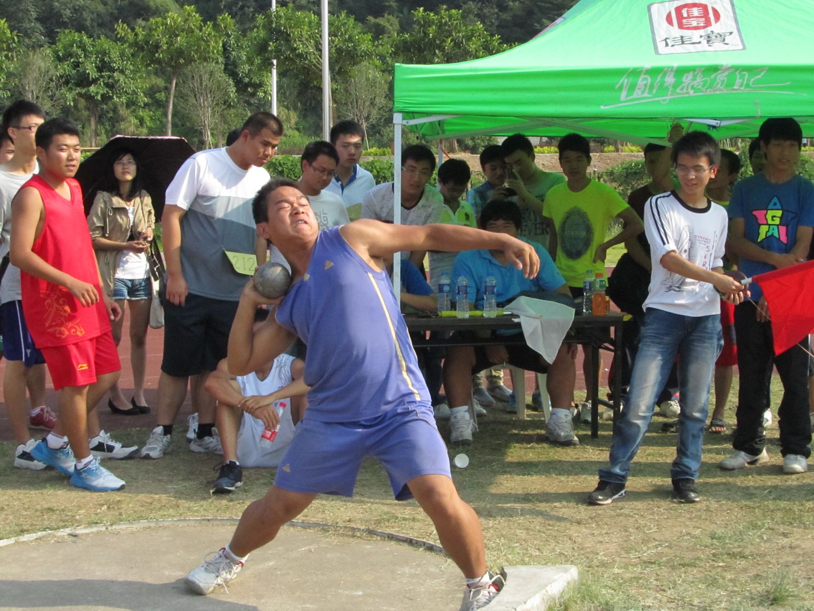 大一运动员温晓鸣,虽然曾多次参加过铅球比赛,但他依旧觉得非常紧张,因为这是他在大学里参加的第一场比赛。面对强劲对手的他倍感压力。虽然晓鸣同学在这次的比赛中战绩并不十分理想,但他依然微笑着,这让笔者由衷地感到佩服。毕竟,在大学这个佼佼者比比皆是的环境中,要在激烈的比赛中取得一定战绩实属不易,能够坦然面对自己更是难得。在交谈中,晓鸣同学也向笔者提及了自己的偶像姚明,在他看来姚明代表着中国篮球的最高水平。而当笔者笑问其是否有想过如偶像般为国争光之时,他无比认真地回答,“我会尽我所能,虽然不太可能。”相信在不久的将来,在经过科学、严谨的训练之后,晓鸣同学会在下一次比赛中取得更优异的成绩,夺得他所想要的光辉。