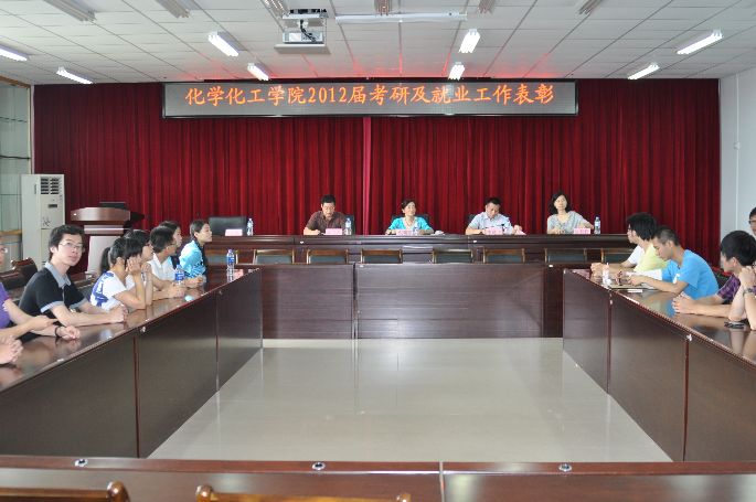 大会分为四项议程,首先由施卫华副书记宣布了2012届化学化工学院考研优秀学生名单以及2012届就业工作先进班级。其次对获奖的人员以及班级代表进行了颁奖。再次,由获奖的同学及班级代表发表了获奖感言。最后,施卫华副书记对本次会议进行了总结。