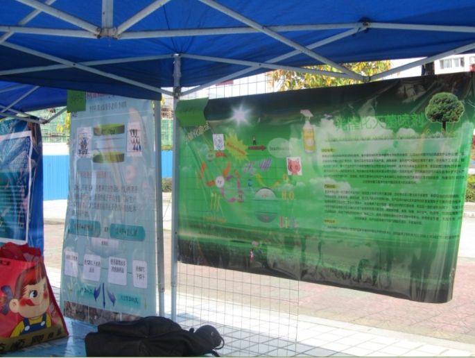 第二十届大学生科技节系列活动——科技作品展拉开帷幕。本次活动展出了各学院独具匠心的科技作品和成果,吸引了众多学生驻足观看,学习了解。我学院选派了四个优秀作品参与展出,分别是第八届挑战杯大学生创业计划竞赛二等奖作品——光催化灭菌喷剂,获国家发明专利的作品——可降低有害成分的滤嘴添加材料,高难度实验研究——不同晶相ZnIn2S4的控制合成及其光解水制氢性能的研究以及由10级学生制作的实用美观的简易取杯器的说明展示品。