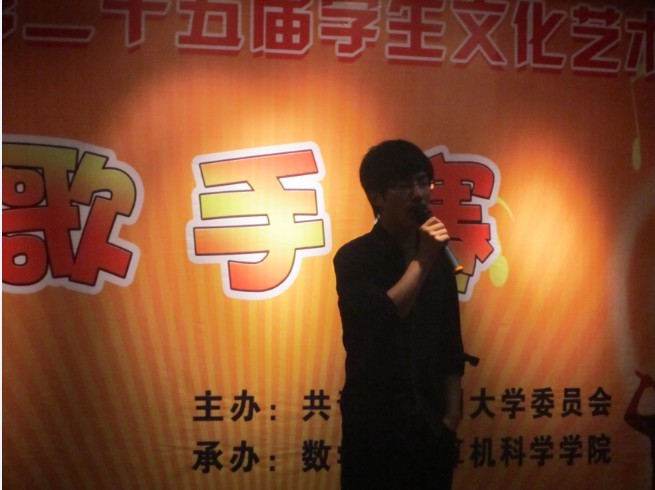 随着《浮夸》的伴奏响起,比赛正式开始了。来自紫金学院郑同学的深情演唱将我们带回了一场美妙的音乐盛会。“冷冷的冰雨在脸上胡乱地拍,暖暖的眼泪跟寒雨混成一块”,材料学院的李文韬同学带我们重温了华仔的经典;“我怀恋的,是无话不说;我怀念的,是一起做梦”,物流学院的孙阳裕同学以优美的歌声感动着我们。比赛进入到中场时,来自阳光学院的赵桐同学使用美声唱法演唱了一曲《为你歌唱》顿时hold住了全场,赢得了观众们多次的掌声和欢呼声!而化学化工学院选手11级化学二班,曾获“校十佳歌手”称号的陈卓同学也参加了此次比赛。他以一首周杰伦的《稻香》告诉了观众们人生需要知足,需要有家的温馨。
