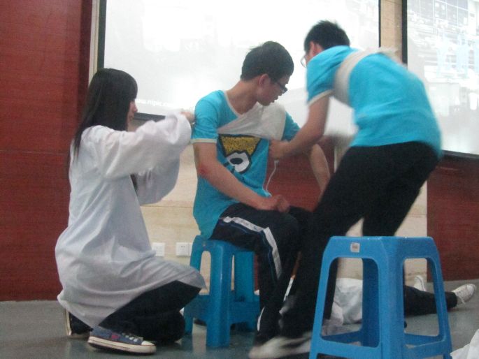本次比赛共有九支参赛队伍,以情景剧的形式向大家展示了急救技能与知识。人文的巅峰对决、机械的仿荆柯刺秦相声等精彩的情景剧表演让大家在欣赏的同时学到了知识。化学化工学院以其独特的情景剧风格,体现出了化院红十字会“人道,博爱,奉献”的红十字会精神。