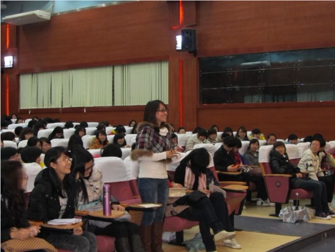 其次,蒋苾青老师从女性方面入手,分析了女大学生谈恋爱的原因,恋爱心理,择偶条件,并且用自己亲身接触的案例,提醒女大学生恋爱误区,避免遭受伤害。
