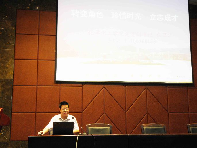 的校史校情、化学化工学院的专业优势、师资配备、强大的科研能力和良好的学术氛围,学院团学工作的突出特点和累累硕果等多个方面,为新生展示了一个全新的大学学习生活的蓝图。他鼓励新生抓紧大学四年美好的学习生活时光,充分利用学校宝贵资源努力学习,积极提升自身的综合素质,争创优秀,并为2011级新生树立正确的价值观、学习观和生活观作了积极和正面的引导。