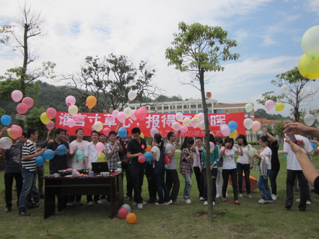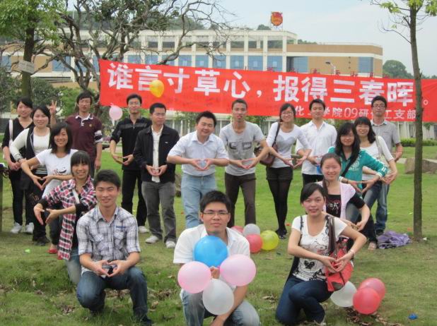 2011年5月8日,一周来的阴雨天空转而升起和煦的暖阳,为母亲节这一特殊的节日增添了不少温馨。上午9时,化学化工学院09研究生化工支部以及其他支部的40余名同学会聚在素拓楼前开拓广场,共同为母亲们恭送祝福。