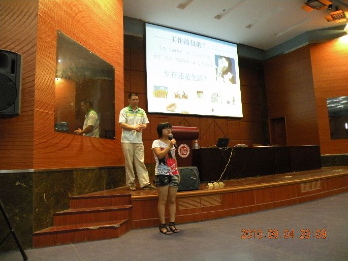 新生作“大学生职业生涯发展与规划”的启蒙教育讲座。黄老师通过四个毛毛虫的故事开始了今晚的讲座,在讲座中,给大学新生分析了大学时光在整个人生中的重要性,鼓励新同学应该尽早制定有效可行的人生目标,努力提高自身的综合竞争力,在整个讲座过程中,新同学积极参与互动,现场气氛活跃。