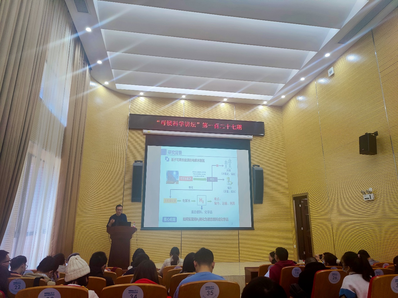 师生带来一次主题为《基于生物/无机耦合催化体系的氢气高值化转化与利用研究》的精彩报告。李中坚副教授主要研究方向为生物/无机耦合催化体系在环境化工与能源化工领域的应用,迄今发表论文七十余篇,授权发明专利10余项,担任多本知名期刊审稿人,担任Chemical Engineering Journal Advances与和Chinese Chemical Letters青年编委。本次讲座由袁珮教授主持,很多对本次会议所报告的研究领域有兴趣的师生到场听取了报告。