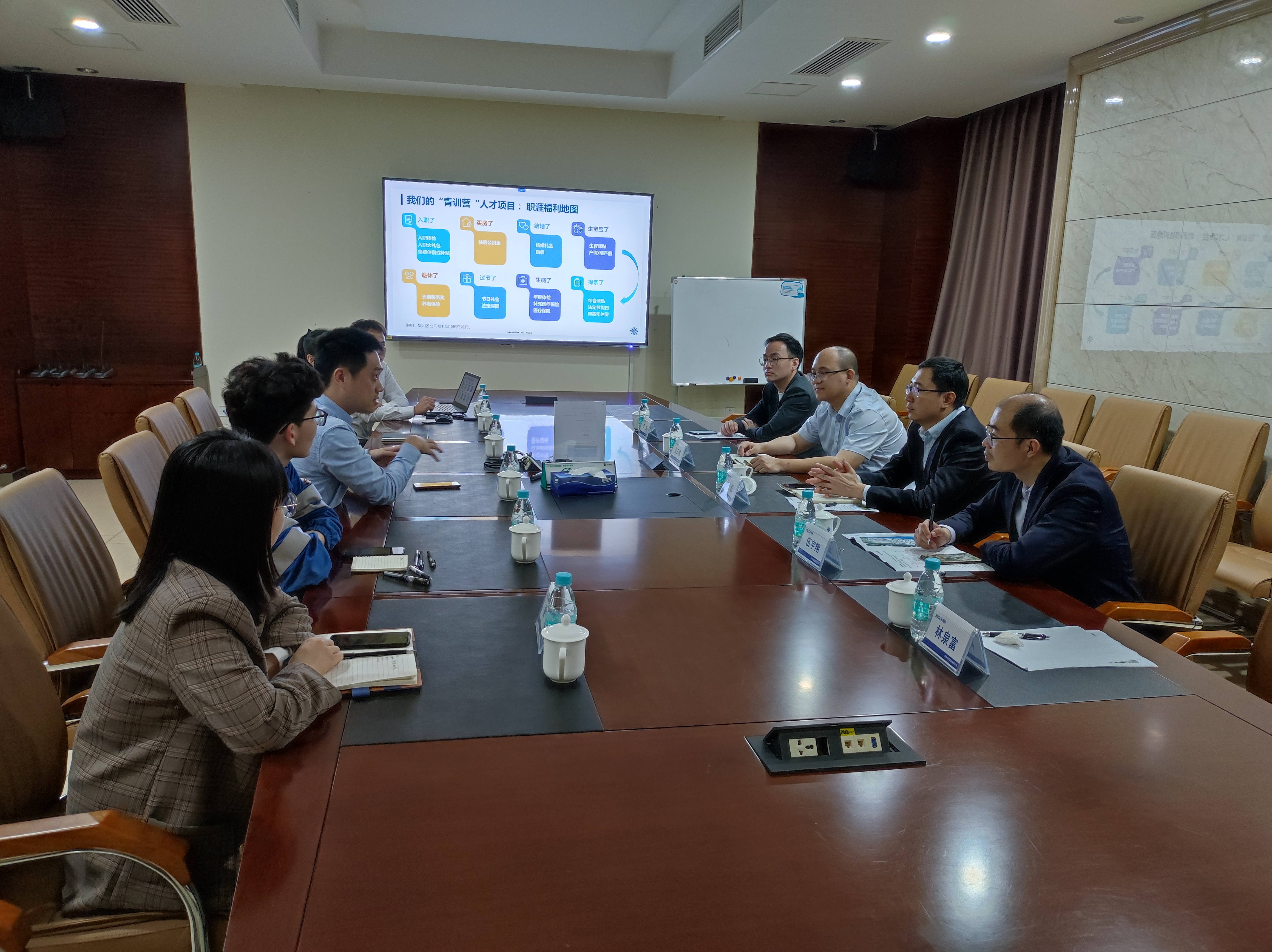 的到访表示热烈的欢迎并介绍了公司的基本情况;黄文峰经理介绍了恒申集团人才招聘的政策和后续发展的情况。林航副书记对恒申集团的热情接待表示感谢,介绍了学院的学科建设和人才培养情况,并希望能够与恒申集团就人才联合培养、科研合作等方面有进一步的合作。