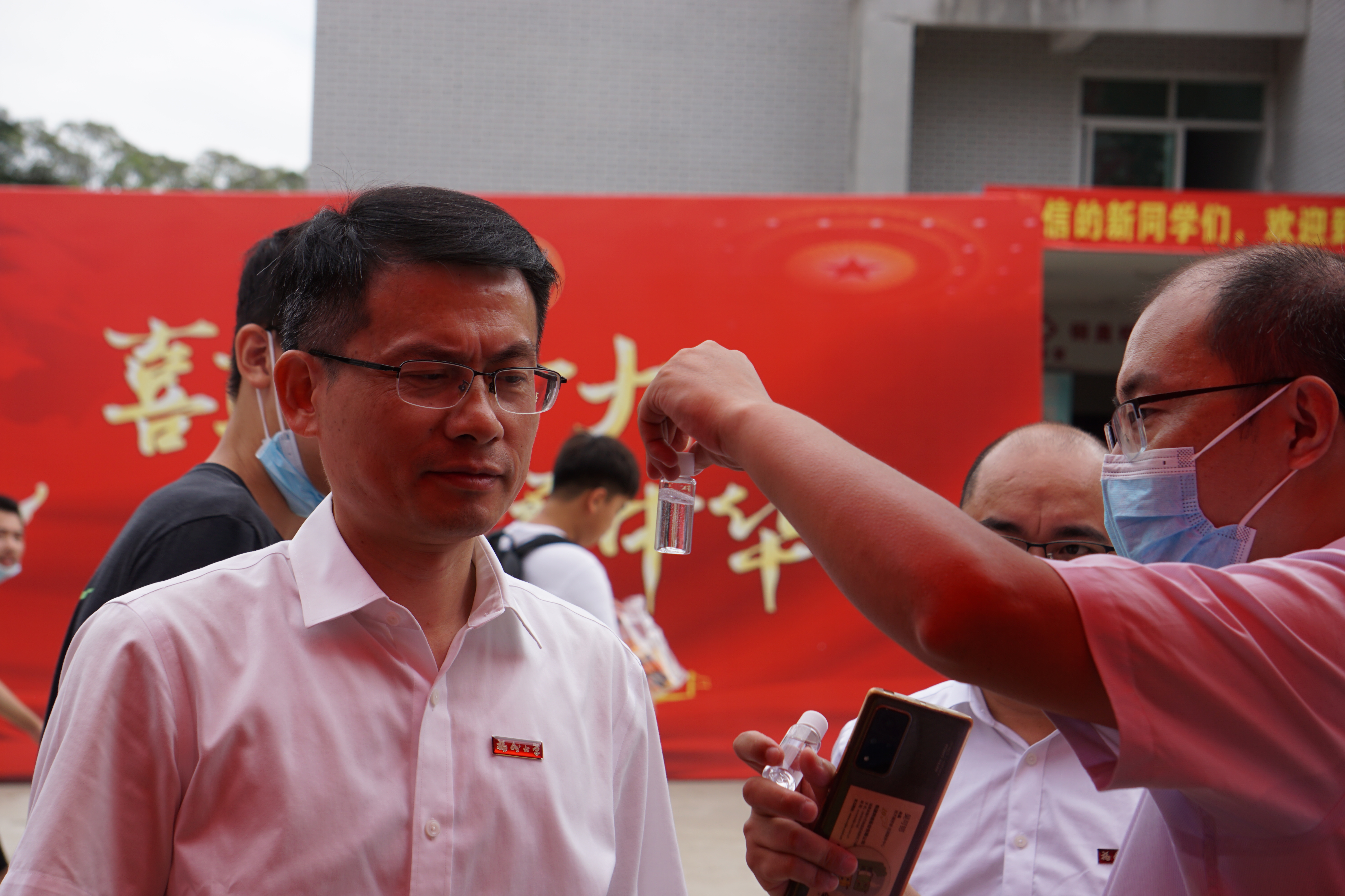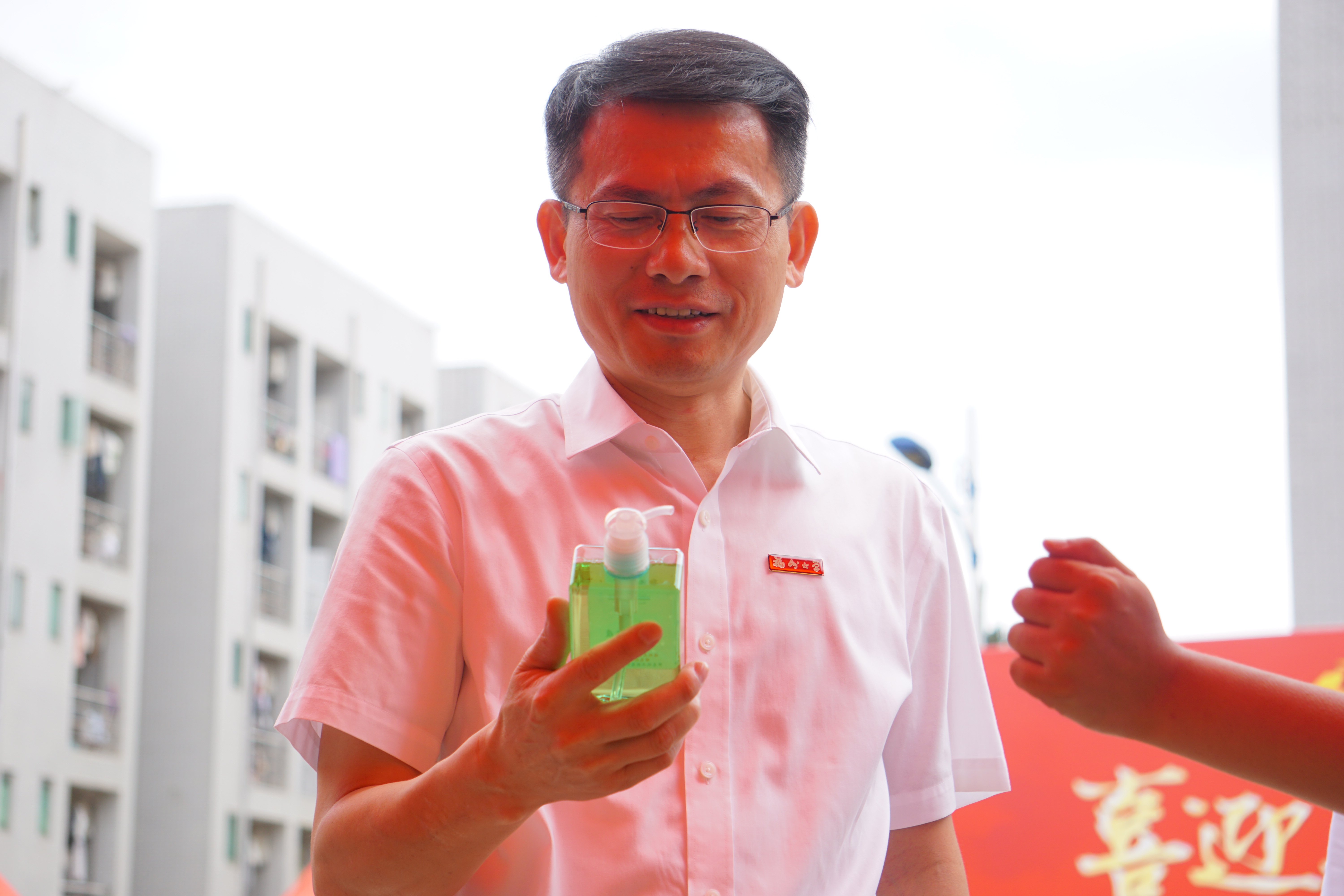 黄身勇书记参观学生自制的洗手液