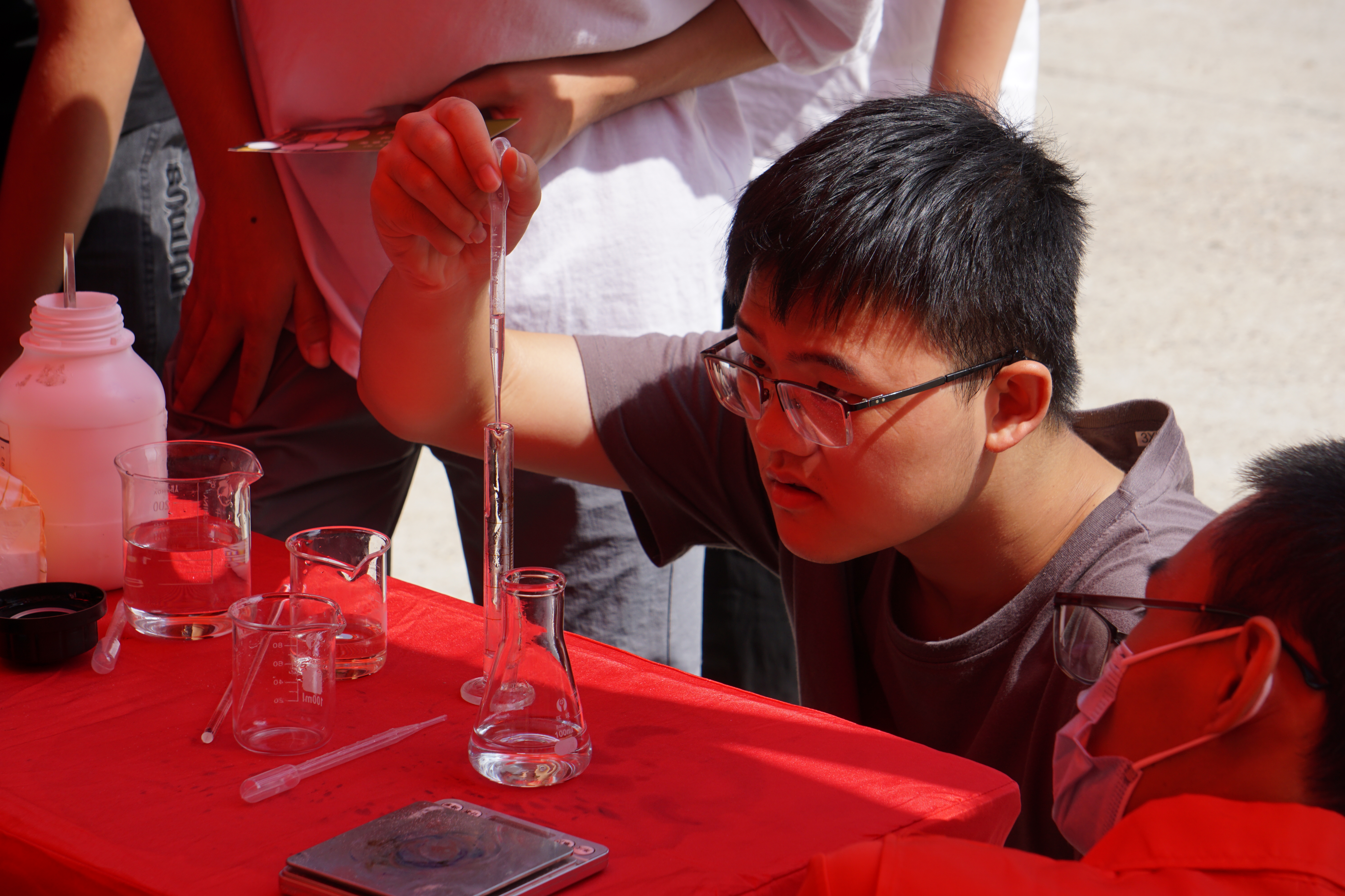 认真做实验的同学