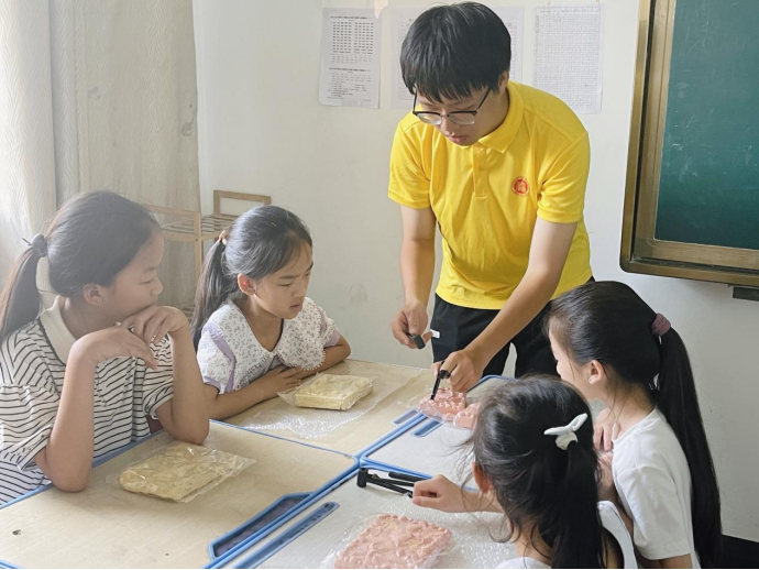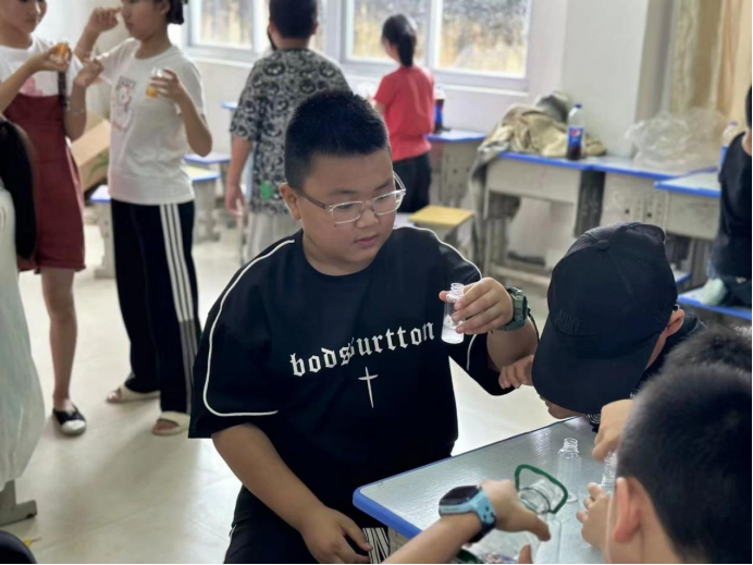 接下来的几天里,实践队先后举办了“绿色化工进课堂”夏令营开营仪式、别开生面的英语兴趣课和趣味游戏、带领孩子们走进柏洋乡爱国主义教育基地、丰富多彩的化工小实验课程以及因地制宜地开展了一堂考古兴趣课。例如,实践队成员肖伟豪为孩子们精心准备了“绿色化工的小小使者”化工兴趣引导课,以91吃瓜