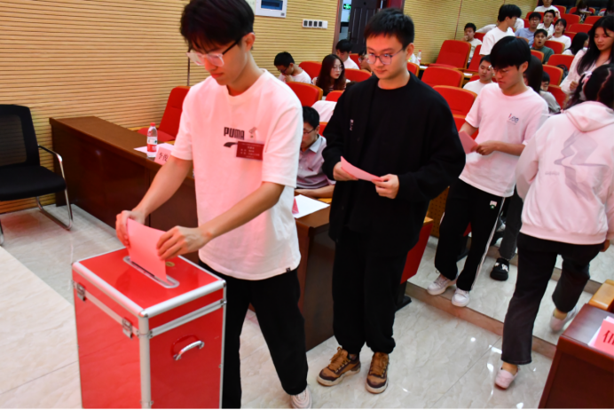 最后,由工作人员宣读石油化工学院新一届研究生会主席团候选人及第三次研究生代表大会常任代表候选人名单。经现场全体代表无记名投票,最终选举陈娟、张哲镕两位同学当选为新一届研究生会主席团成员。
