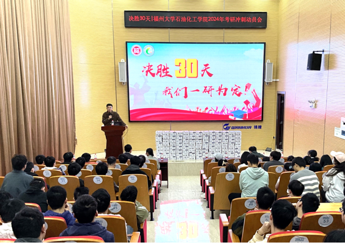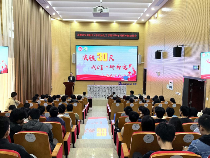 为帮助考研学子坚定备考信心,鼓舞考研士气,传递温暖和力量,11月23日,在考研倒计时30天之际,石油化工学院于泉港楼优尔报告厅举办了“石油化工学院2024年考研冲刺动员大会”。学院党委林航书记、蒋林娟副书记、2020级辅导员李俊锋老师、夏云辉老师及2020级全体考研学子参加此次动员会。