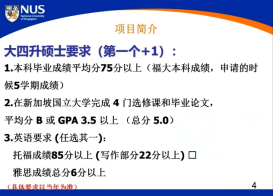 “3+1+1”化学与生物分子工程(ChBE)项目的要求和内容,着重介绍项目优势。此外,她还分享了新加坡国立大学(NUS)的学费、生活费、学习环境、科研资源等方面的信息,最后,学姐告诉各位同学如果想要了解更多的资讯信息,要学会关注学校官网或者各类宣讲会。