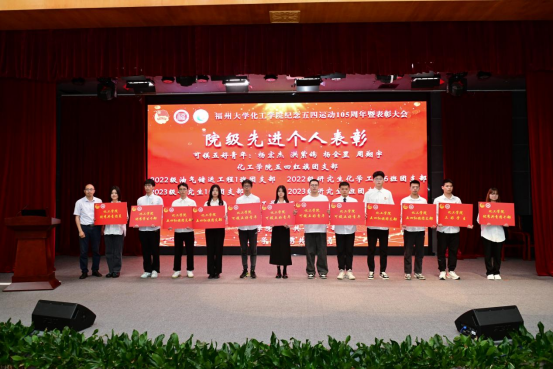 五四精神薪火传,青春挺膺建新功。化工学院纪念五四运动105周年暨表彰大会在共青团团歌中落下帷幕。