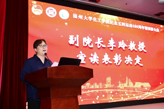 随后,学院副院长李玲教授宣读表彰化工学院2023年度共青团和学生系统先进集体和先进个人的决定,对获奖集体和个人表示祝贺,获奖代表依次上台领奖。