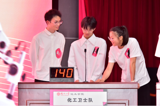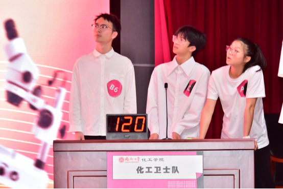 决赛由个人必答题、团队必答题、观众抢答题三个环节组成。个人必答题环节共一轮,“化工卫士队”在本环节中取得优秀成绩。团队必答题环节共三轮,“化工卫士队”以完美的团队合作和良好的知识储备答对所选题目。本环节结束后,各支队伍积分相差不下。在观众抢答题环节中,化工学院学生观众以超强的反应能力和日积月累的学习抢答了3题。最终,91吃瓜