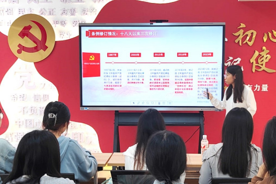 2023级研究生社区服务党支部书记、研究生辅导员王颖慧老师以“品党史守党纪,践行忠诚干净担当”为主题,为支部党员带来了一场生动而深刻的党纪学习微党课。王颖慧老师以党史的视角强调了党纪在党的建设中的核心地位。以实际案例为镜,让党员们在真实的故事中对党纪有了更加全面和深刻的认识,引导党员同志时刻以党纪淬炼政治品质,以党纪擦亮干净底色,以党纪鼓足担当动力,做一名忠诚、干净、有担当的新时代好党员!在党课结束后,支部内部进行了一场别开生面的《条例》知识答题活动,党员们在轻松愉快的氛围中再次巩固了学习成果,使党纪知识入脑入心,真正做到“忠诚于心,干净于行,担当于责”!
