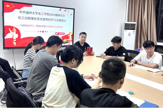 为深入学习贯彻习近平总书记关于党纪学习教育的重要讲话和重要指示精神,加强研究生党员的党性修养和廉洁自律意识,化工学院2023级研究生各党支部在旗山校区和怡山校区深入开展党纪学习教育,通过“学好一本《条例》、讲好一堂党课、做好一次警示教育”,不断加强学生党员的纪律意识,自觉将遵规守纪内化于心,外化于行,推动党纪学习教育走深走实、见行显效。