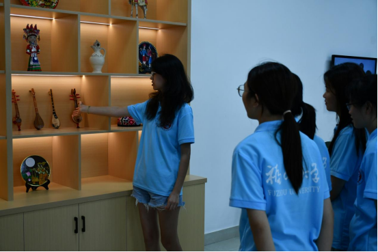 7月7日上午,“行走木兰溪,汇聚青力量”实践队一行抵达莆田,并在莆田站内的少数民族工作室与工作人员展开亲切交谈。来自新疆维吾尔族的实践队成员迪丽胡玛尔同学还热情地为其他队员介绍少数民族的乐器和特色服饰等。