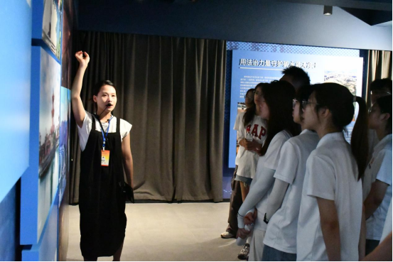 上午9时,实践队员抵达此行第3站——木兰溪治理展示馆。实践队队员们在讲解员的带领下参观并学习了木兰溪治理的历程和成果。展示馆分为序厅、为民情怀、科学决策、率先垂范、久久为功和尾厅6大主题。展示馆运用造型墙、画框展板、铜版画、水晶字、3D技术等展示方式,用一幅幅照片、一段段视频、一件件实物,记录木兰溪从“谈洪色变”的历史创伤到“人水和谐”的生态新图景。