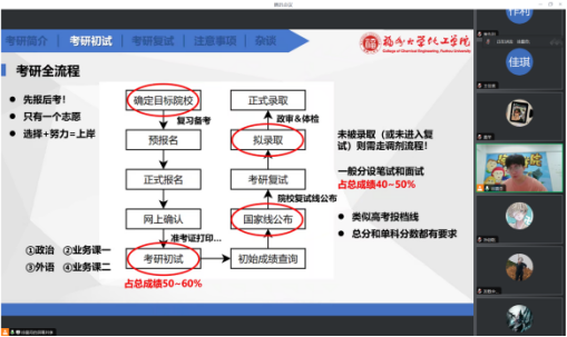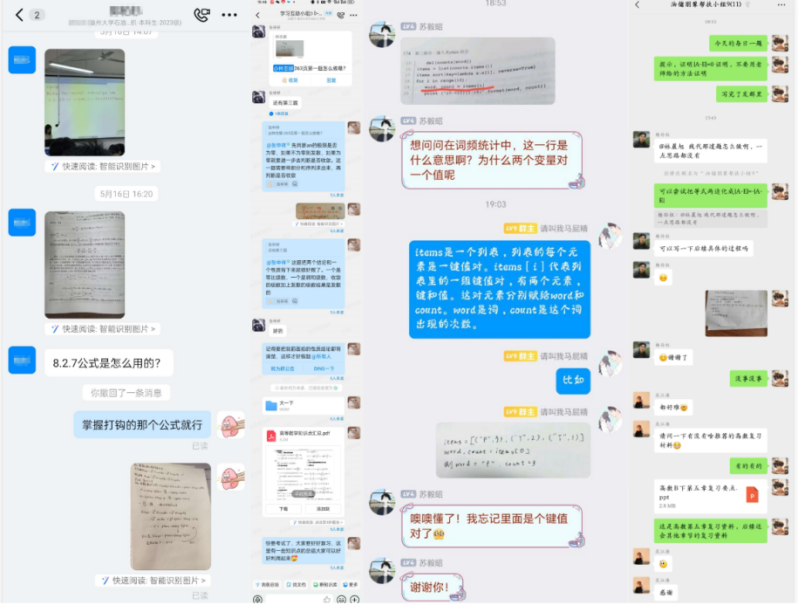 二是实行“一竿子到底”的全面帮扶。年级依托学院一站式学生社区活动室组织开展线上线下相结合的朋辈辅导活动,辅导科目包含所有主干课程,活动形式包括学霸一对一辅导、小组一对多答疑、线上多对多研讨、学业优秀同学经验分享会等。活动实施至今线下已开展50余次帮扶活动,辐射学生75人次,时长超100小时,切实发挥了学习榜样的先锋模范作用,以先进带后进,营造了互帮互助的良好学习氛围。