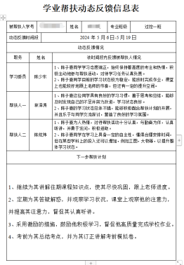 三是形成“一帮人使劲”的强大合力。年级积极联合辅导员、班主任、班级干部、学长学姐等各方力量,形成全员参与、共同推动的强大合力。辅导员通过日常管理教育,引导学生树立正确的学习观和考试观;班主任通过专业思想教育和学业指导,培植学生专业自信,增强学习动力;班级干部通过落实各项学风管理制度,强化学生纪律意识,提高学习效率;学长学姐们则通过分享学习经验和技巧,为学生提供实用的学习方法和策略。这种多方联动、共同使劲的模式,为年级的学风建设注入了源源不断的动力。