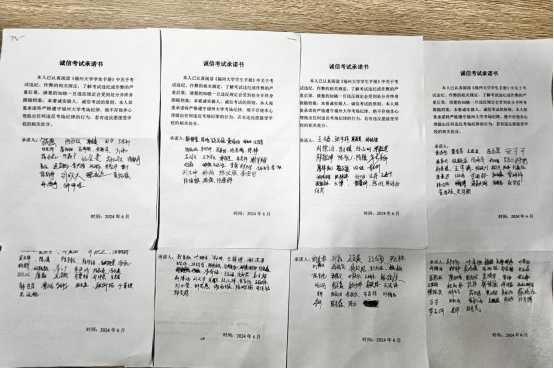 召开期末诚信考试教育专题段会,全方位营造诚信应考的氛围。召开党支部专题会议,为党员和积极分子解读考试违纪的法律法规,要求他们要心存敬畏,坚守底线,严格遵守考试纪律,做诚信考试的实践者和维护者。做到全员全覆盖签署诚信考试承诺书,让考试纪律规则意识深刻印入同学们心中。组建研究生党员巡考队,做到场场必巡、次次必严,让学生从不敢作弊—不能作弊—不想作弊的链式机制。