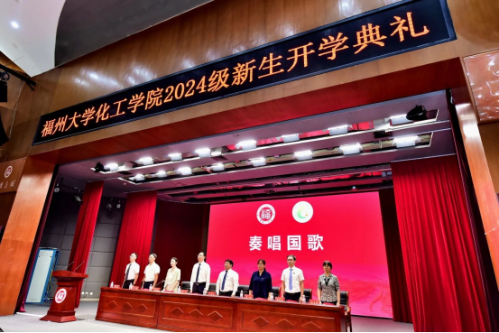 伴随着庄严的国歌奏响,开学典礼拉开帷幕。声声磅礴,2024级新生以饱满的精神面貌展现福大化工人的风采。