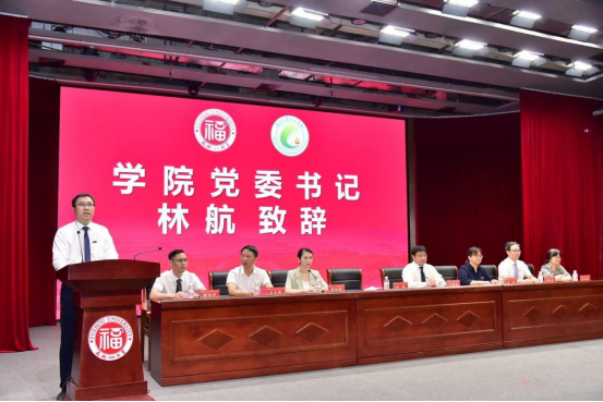 学院党委林航书记为全体新生作题为《在竞逐新质生产力中彰显化工新生代的责任与担当》致辞。他代表学院对新生们,以及参加开学典礼的企业代表表示最热烈的欢迎!他表示,学院能够聚天下英才而培育,倍感荣幸之余,全院教职员工也将竭尽全力,落实好实现好立德树人的根本任务。