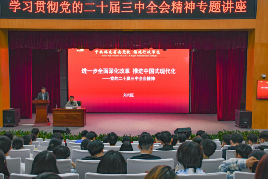 11月25日晚,中共福建省委党校马克思主义研究院副院长、《中共福建省委党校(福建行政学院)学报》副主编刘兴旺老师受邀为化工学院讲授《进一步全面深化改革,推进中国式现代化——党的二十届三中全会精神》的专题讲座。讲座由化工学院党委林航书记主持,化工学院师生党员、入党积极分子及青马学员通过线上线下方式参加。