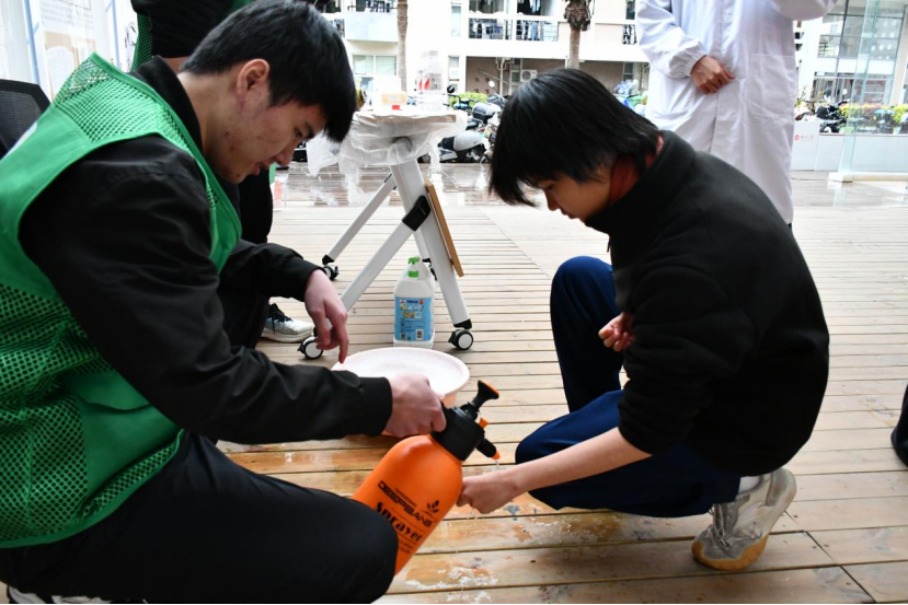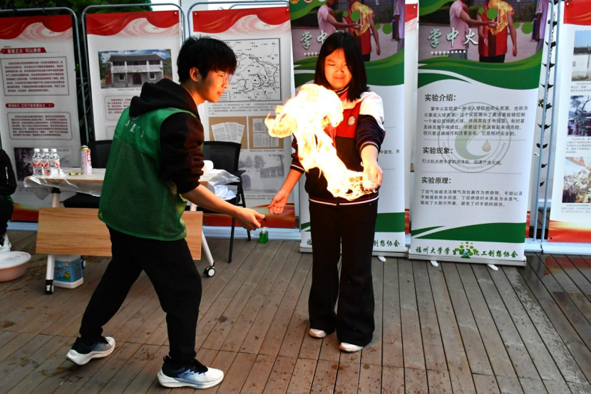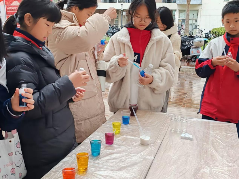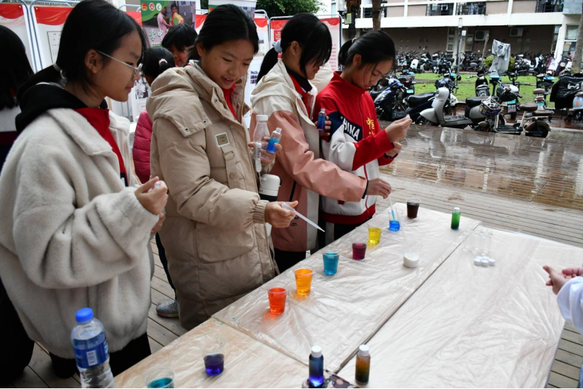 化工学院志愿者们化身“科学使者”,将实验室“搬”进“一站式”社区,结合化工学科特色,设计了“掌中火”实验、“微观海洋”创意瓶制作等互动环节。附属实验学校的孩子们在大学生志愿者的指导下,亲手操作“掌中火”“海洋瓶”等趣味实验,近距离感受化工的魅力。志愿者们还耐心解答孩子们关于科学现象的提问,激发青少年对化工学科的浓厚兴趣。