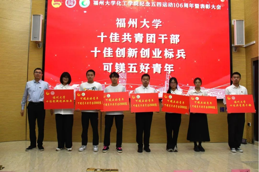 学生代表洪惠真结合自身经历,分享了在科研、学生工作及志愿服务中的成长感悟,号召化工学子怀揣梦想、勇毅前行,在时代浪潮中贡献青春力量。随后,与会领导为获奖集体和个人代表颁奖,激励广大青年对标先进、奋发有为。