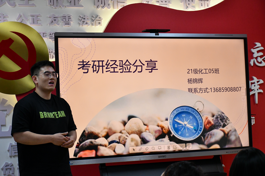 科技学术部承办的考研、保研经验分享会在学生公寓博学苑A区“一站式”社区党6月4号晚举行本次分享会邀请到化工学院方茹萍、陈一萱、洪珊妮、杨锦辉、薛志鹏五位优秀的学长、学姐分享保研经验