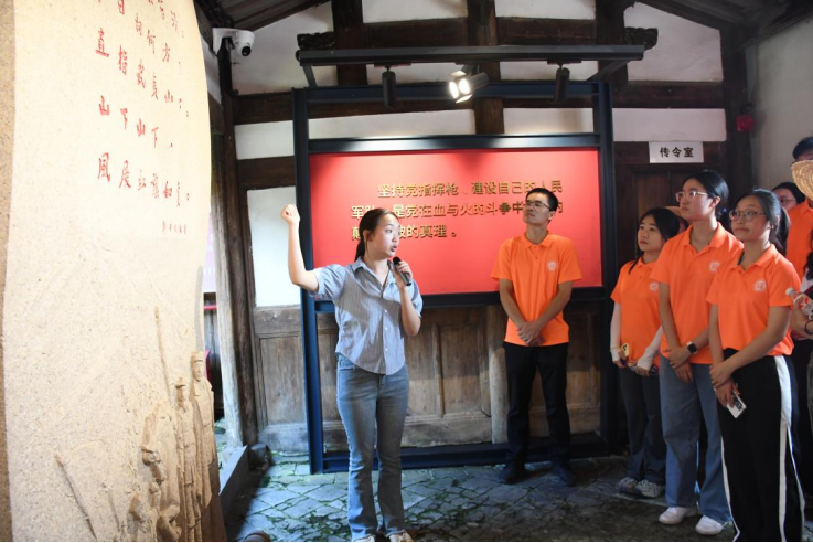 在毛泽东旧居纪念馆,伴随着讲解员生动的讲述,实践队深入学习了闽西革命根据地的光辉历史。面对展馆内珍贵的历史文物和图片资料,队员们驻足凝视,认真体悟毛泽东同志《如梦令·元旦》中“路隘林深苔滑”的革命意境,深刻领会“风展红旗如画”的豪迈情怀。通过重温红色诗词,队员们对毛泽东党建思想的时代价值和实践意义有了更深刻的认识。