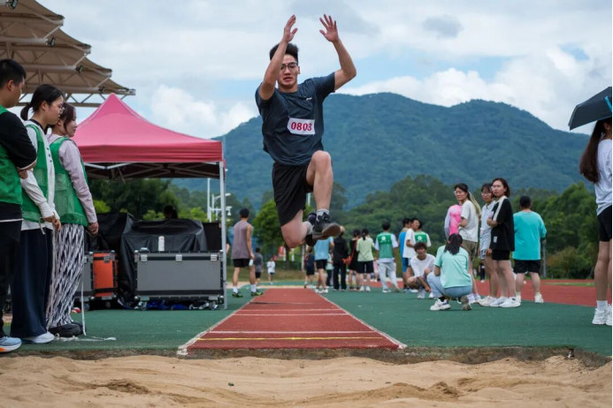 以技为刃,突破边界。这里的精彩藏在每一次精准的掌控里。铅球出手划出的弧线是全身力量的凝聚;跳高过杆时轻盈的身姿,是一场身体与横杆间的温柔博弈;跳远时身体的腾空,是一次助跑与爆发完美衔接的飞翔。力量托举梦想,技巧点亮瞬间,每一次的尝试都是对“更高、更远”最生动的诠释。