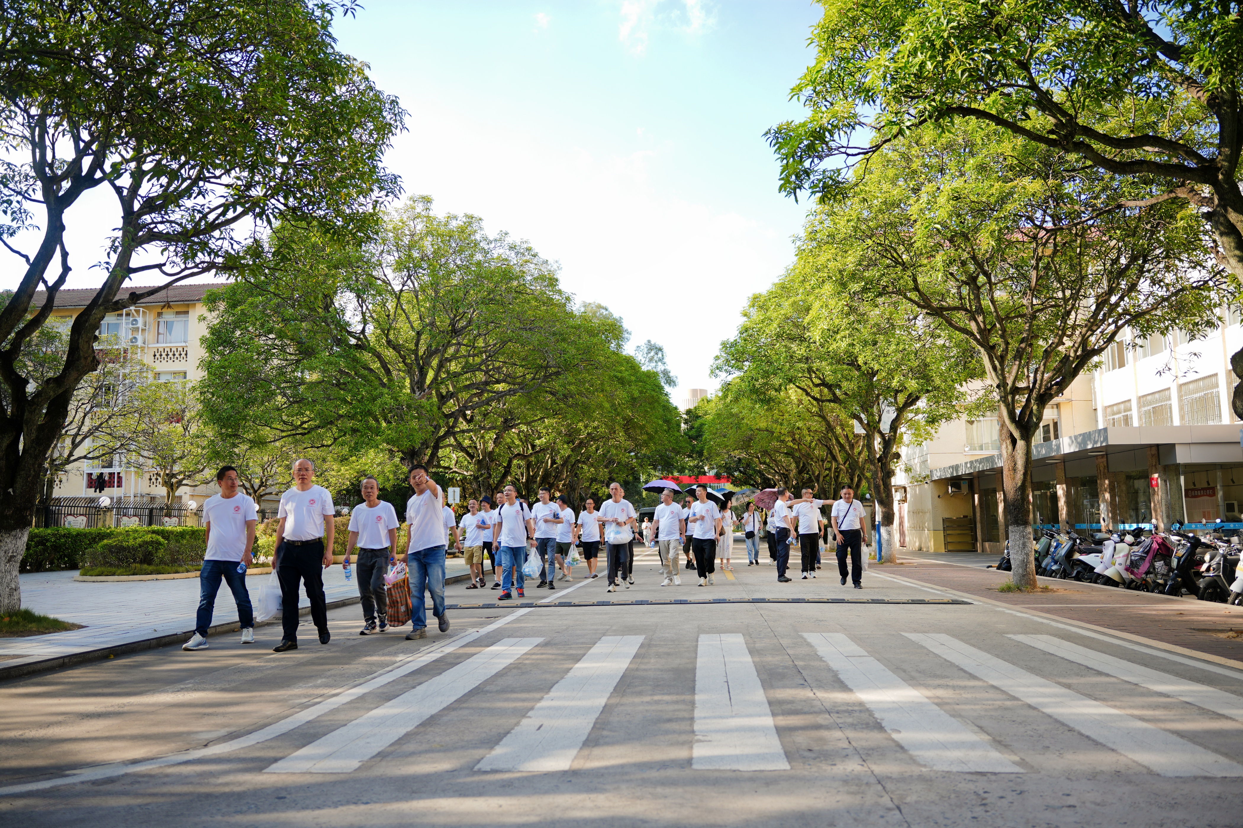 活动最后,校友们前往怡山校区开展“故地重游”活动。漫步于曾经学习生活的林荫道,驻足于熟悉的教学楼、宿舍楼前,校友们仿佛回到三十年前的青春岁月——大家回忆起挑灯夜读的专注、球场拼搏的热血、同窗相聚的欢笑,纷纷表示“怡山校区的一草一木都承载着青春记忆,此次重游既温暖又珍贵”。