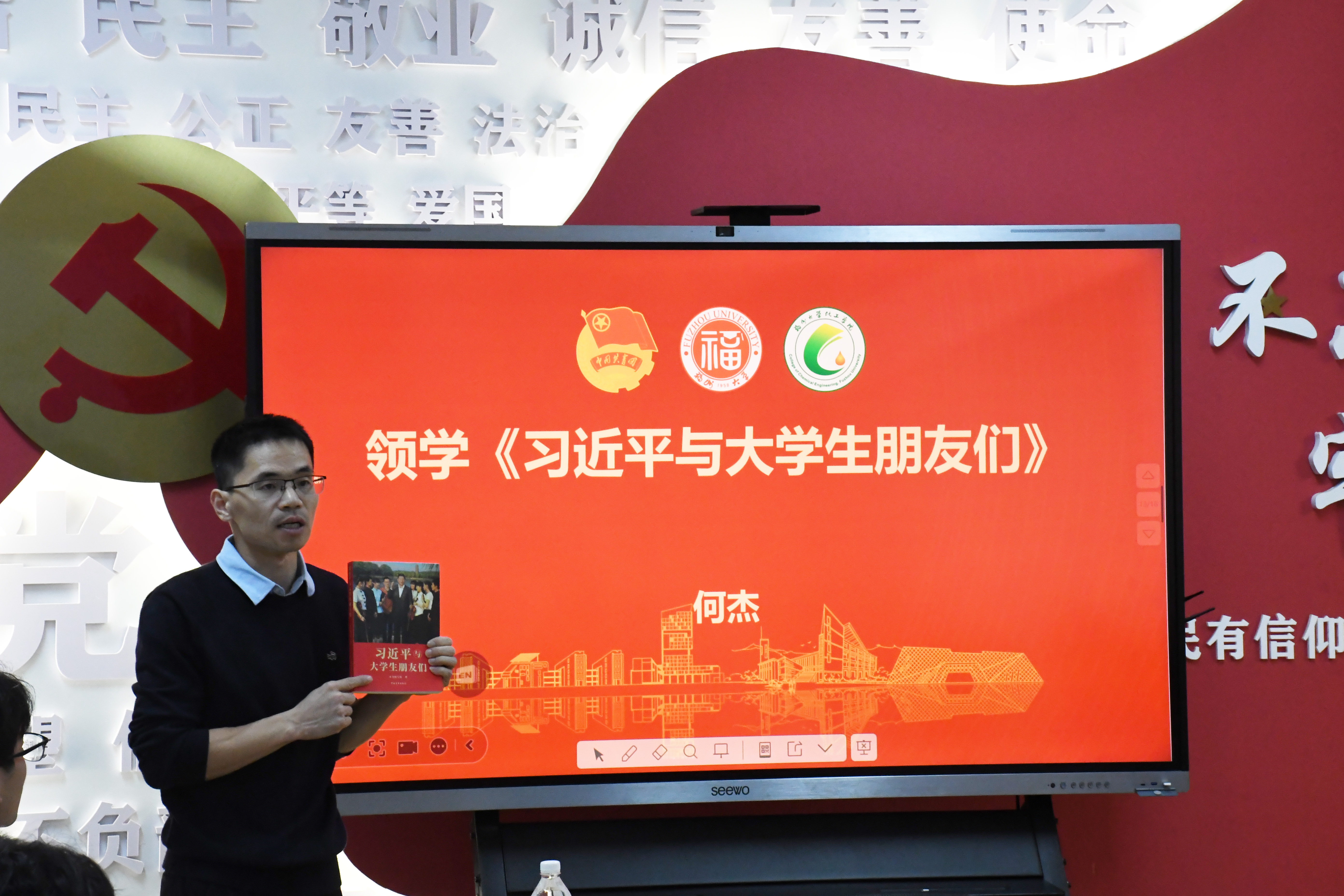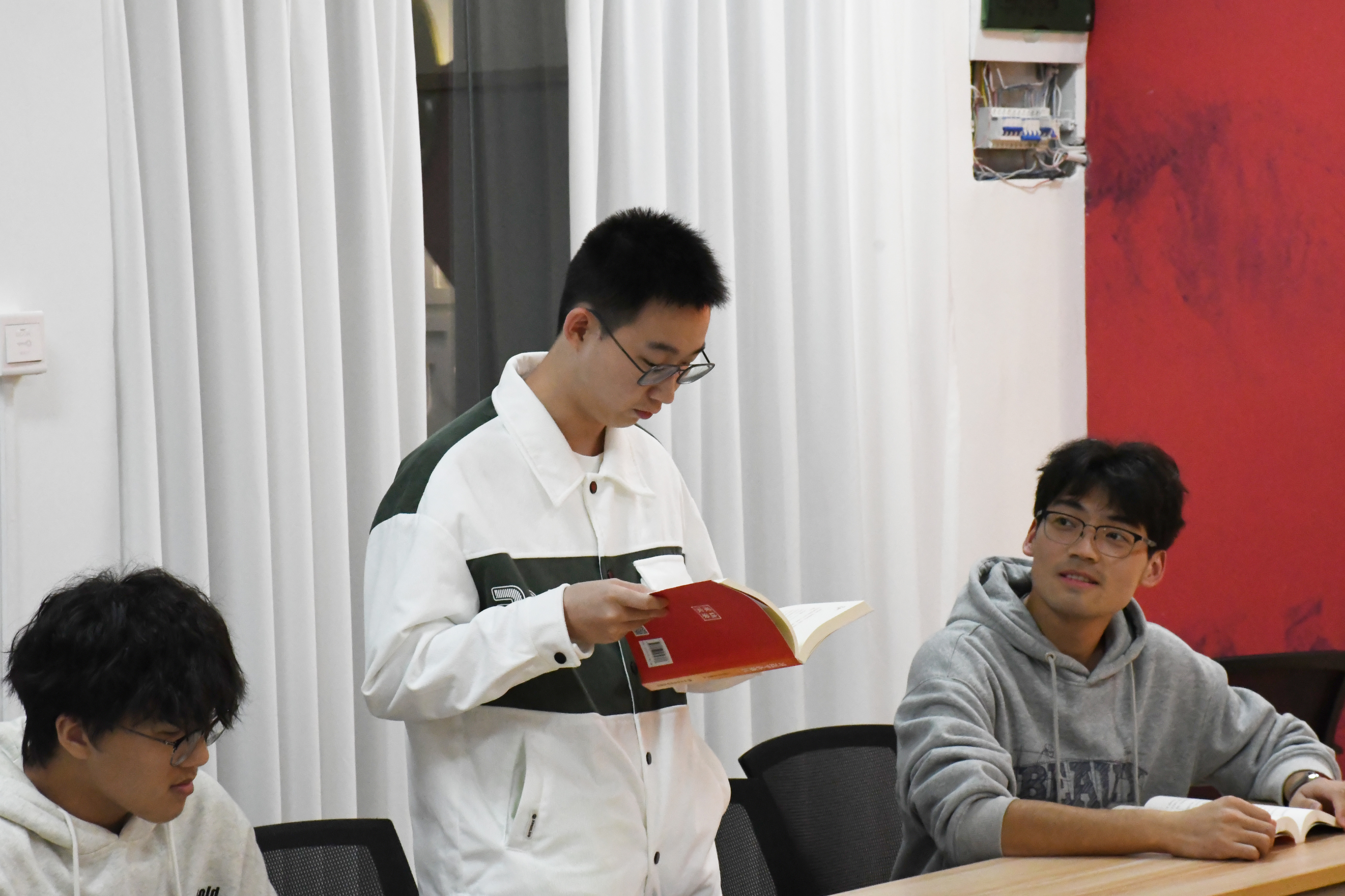 接着,为了贯彻落实习近平总书记五四重要寄语精神,团委副书记何杰带领学生骨干们阅读《习近平与大学生朋友们》,深刻感悟总书记的“青年观”。会议上,两名同学分别从“绿水青山就是金山银山”生态保护方面和习近平总书记与基层工作者沟通的三种核心能力“忍耐力、直觉力和行政力”方面分享了自己的见解。