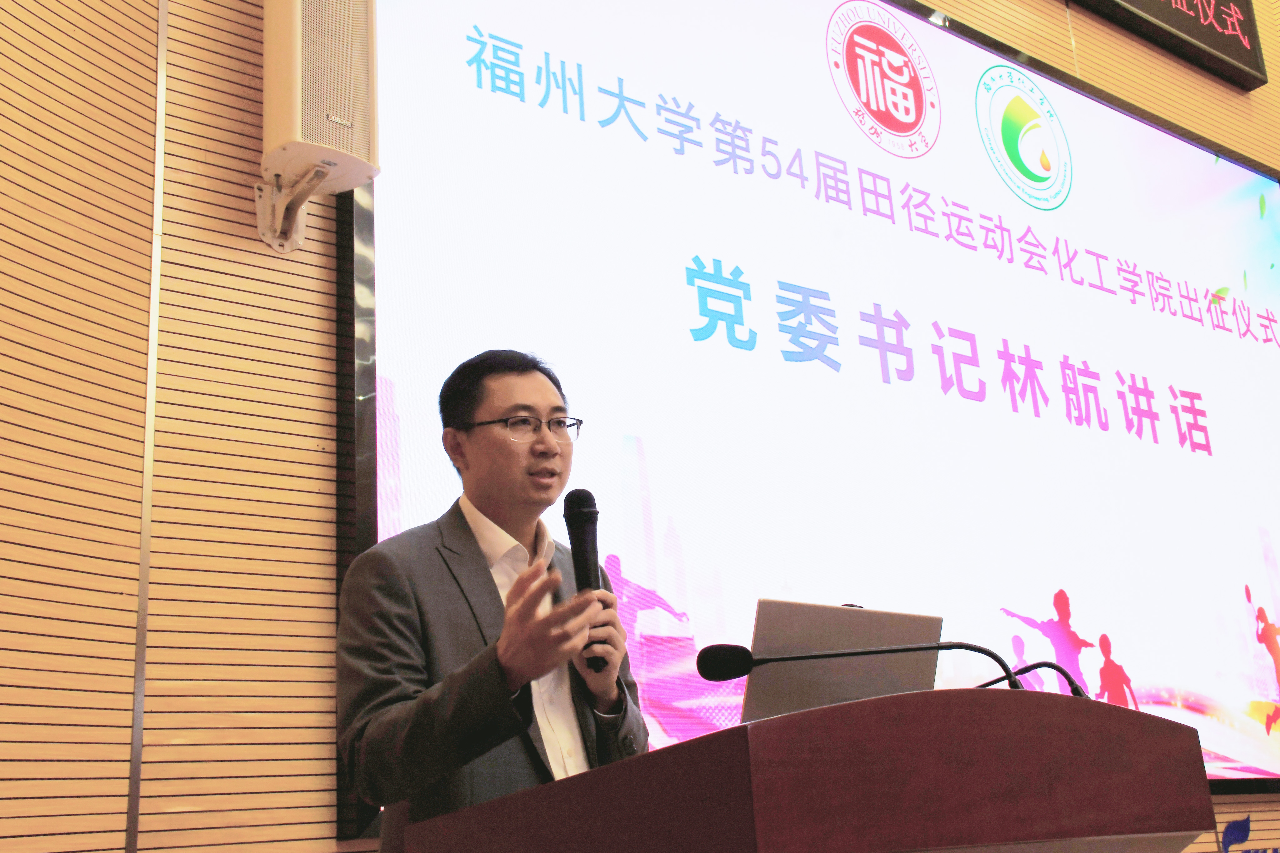 出征仪式上,林航书记作讲话发言。他强调,体育锻炼是“人生中不可或缺的一门必修课”,不仅能强健体魄,更能锤炼意志、塑造品格。同时,他倡导全体运动员在赛场上互帮互助、团结协作,共同维护化工学院代表队的良好形象,充分展现化工青年的昂扬风采。林航书记还特别叮嘱全体运动员,要始终将安全放在首位,在享受比赛过程、珍惜每次参赛机会的同时,也要勇于挑战自我,因为“每一次起跑,都是对自我勇气的生动诠释”。