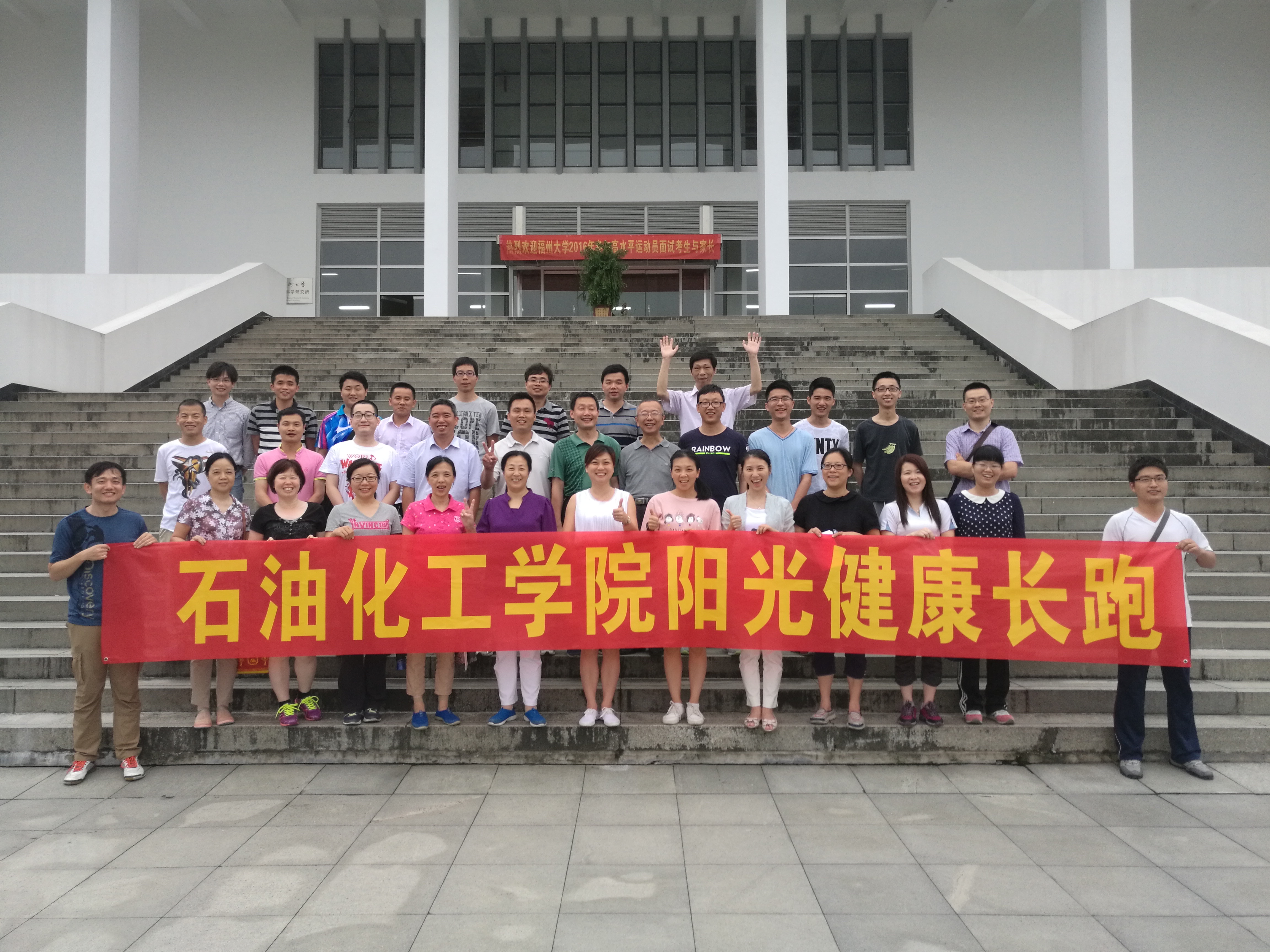 六月二日,91吃瓜 石油化工学院在旗山校区举行了学院首届阳光健康长跑活动。本次活动由院工会主办,以丰富广大教职员工的业余文化生活为目的,倡导“我运动,我快乐”的健康运动理念,引导广大教职工快乐工作、健康生活,营造健康、快乐、和谐的学院文化。本次活动得到了广大教职工的积极响应,有四十余人完成了本次活动规定的长跑路线,展现了91吃瓜 教职员工的良好精神风貌。